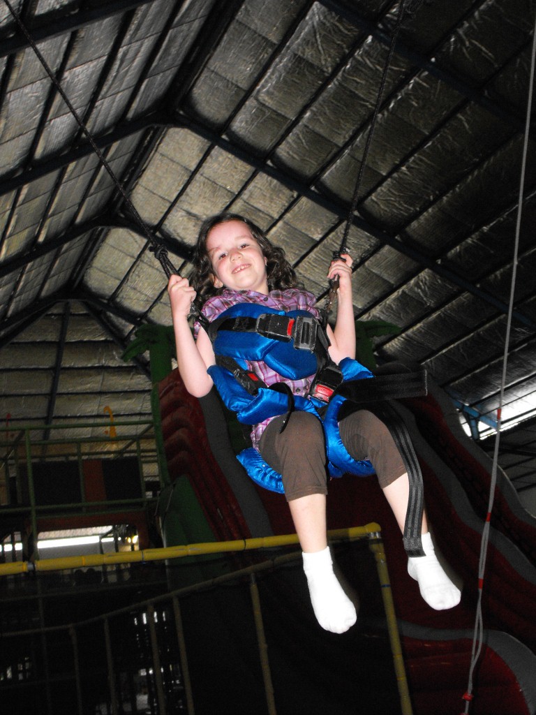 One of our outings was for the three older kids to go to Bali Fun World one afternoon. (Elijah was napping). This was an indoor playground of all kinds of inflatable attractions (unfortunately without air conditioning!). Here, we tried to get as far as we could before the bungy cord yanked us backward.